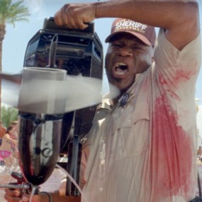 The story line is driven by two characters, Elizabeth Shue as the town’s sheriff and her son, an instantly forgettable teen archetype that you’ve already met in a thousand other films. Piranha 3D is obviously following the same plot as another famous underwater-baddie-gone-wild movie and lets you know it right off the bat as Richard Dreyfuss, made famous for his role in Jaws, is the first victim of the fishies. Perhaps he should have gotten a bigger boat – sorry, I couldn’t resist. His appearance is the first in a long line of surprisingly effective actors pitching in for a paycheck. You’ll get a chance to see Ving Rhames wield a shotgun and a motor boat in his fight against the aquatic demons as well as Christopher Lloyd in an underutilized role as a marine biologist. And if the name Kelly Brook means anything to you, which it doesn’t to me, but apparently she is famous and well loved, then you’ll delight in knowing she bares all in the under water lesbian ballet.