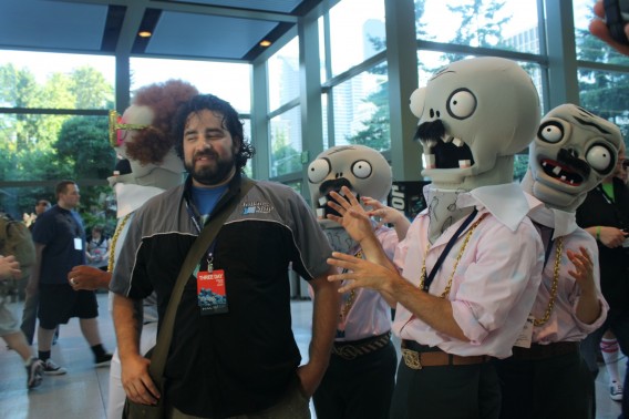 As discussed on the podcast, I thought I’d share a couple of images of the prank we played on Farva at PAX involving some characters from Plants vs. Zombies. Let’s just say they weren’t the plants. They were these guys to the left!
