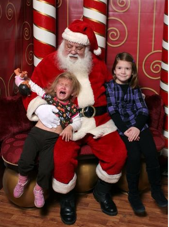Then it was my youngest daughter’s turn, and all hell broke loose. She was not one to daintily plop down on this supposedly magical man’s jiggly hips. No, she decided the best course of action in this situation was to scream bloody murder until we relented and took her away. Ten days from now we will be receiving the pictures, and that got me thinking about just what they might look like, so I’ve gathered up some of the best Santa pictures on the net for you to enjoy with me.