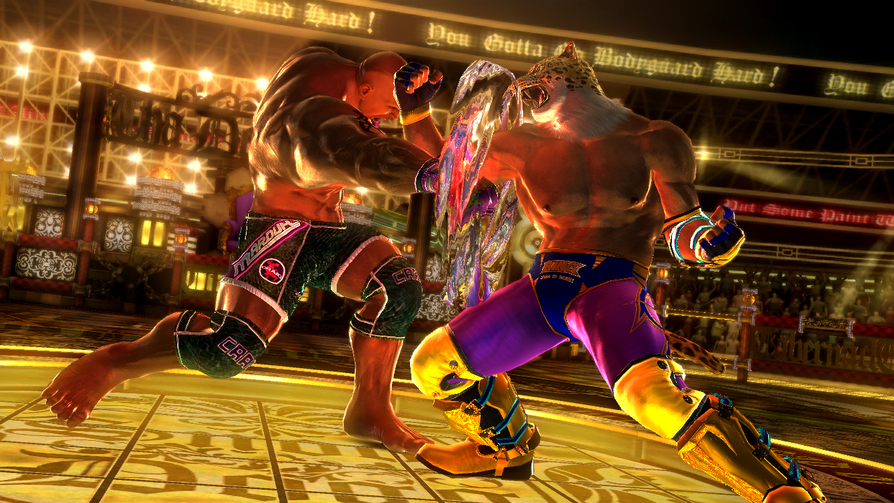 Tag Tournament 2 can be a very pretty game at times. A wonderfully colourful array of characters and environments really bring the fisticuffs to life. Characters’ costumes pick up dirt and wear & tear the more you beat them into the mud, and immaculate character models can dominate the screen with a sense of intimidation that’s hard to pull off. Unfortunately background characters and objects can occasionally look a bit last-gen, and it can be quite jarring when you look beyond your expertly rendered fighter and notice a blocky, poorly animated crowd member in the background. On the sound front, a largely techno score keeps things as arcadey as ever, and cheesey one liners before a bout kicks off will send beloved Tekken memories flooding back. Other modes include a fun 4 player, 2 on 2 set up called Pair Play which is great fun with friends and would be a good addition to a party, and character customisation options, which lead to some very fun personalisation. King wearing shades is the epitomy of cool.