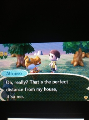 So yeah, upon waking up (on the floor I might add, we’ll get to that later) I discovered I was in fact in my wonderful, new, very small home. To give you an idea of how small it is, it’s the same size as the bastard tent. 10,000 bells well spent! Or so I thought, as when I payed a trip to Tom Nook to thank him for his speedy work, he informed me that I actually owed him another 39,000 bells. This raccoon is an utter c***. Seriously, a first rate fuckwad. Consumer rights really need to get onto this guy. I’m pretty sure it’s illegal to sell someone a house without telling them how much it’s going to cost first. I might scour the start menu later, have a good look for a “sue that sneaky little shit” mini-game or something.