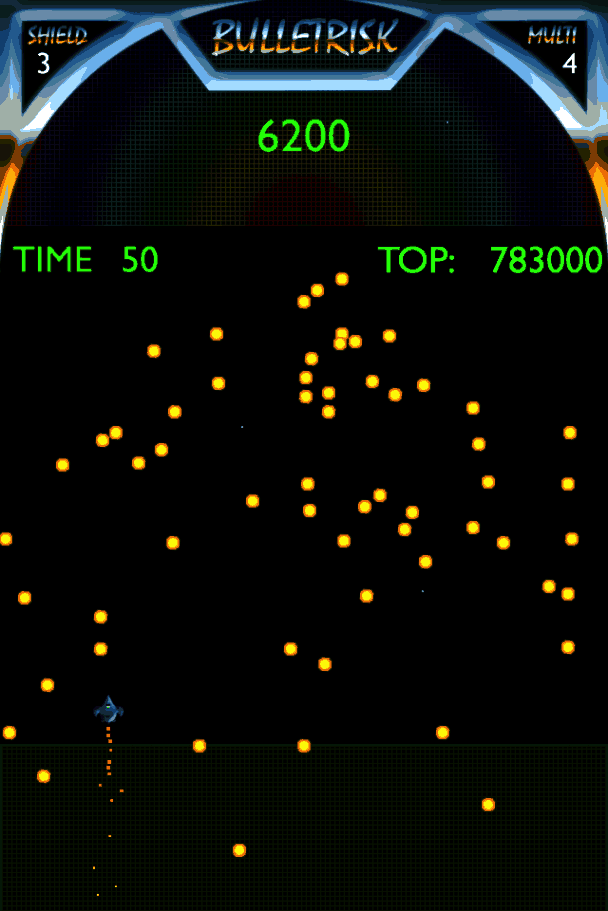 Bulletrisk is a slick and fast paced reverse shooter for iOS, where the aim of the game is to fire as many bullets at your ship as you can without getting hit. You’re taking risks of a bullet-y nature, hence the name.